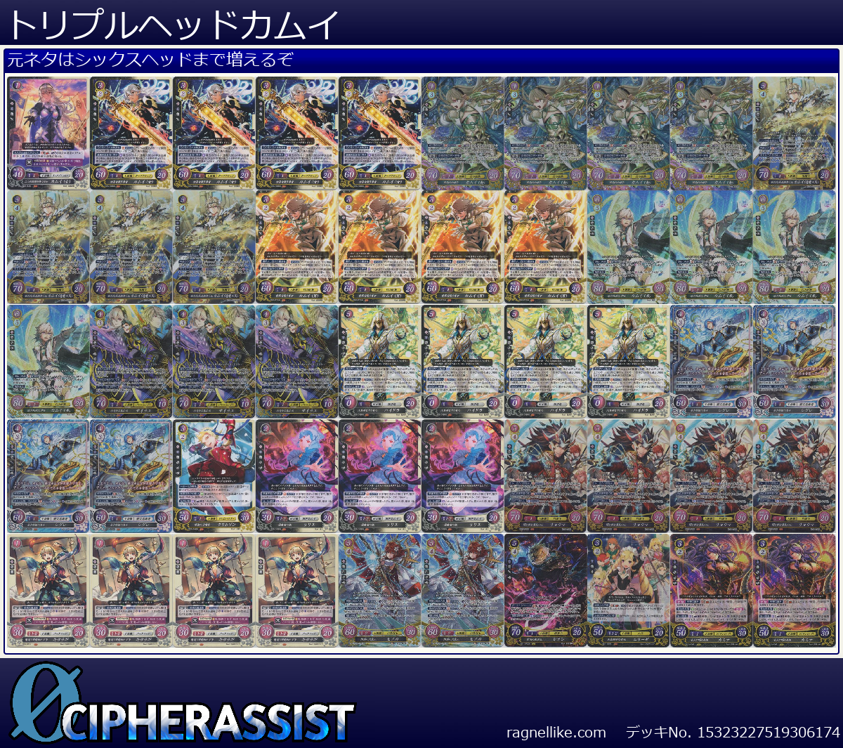 | B20-001SR 新たな未来を拓く王 カムイ(透魔王国) | 4枚 | 白夜/暗夜 | 5 | 4 | 70 | 20 | 1 | 男 | 剣 |