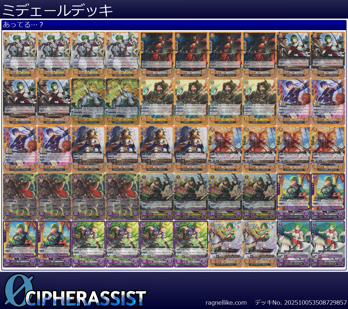 | B19-059HN 仇敵を追う弓騎 ミデェール | 4枚 | 聖戦旗 | 3 | 2 | 50 | 20 | 2 | 男 | 弓 |