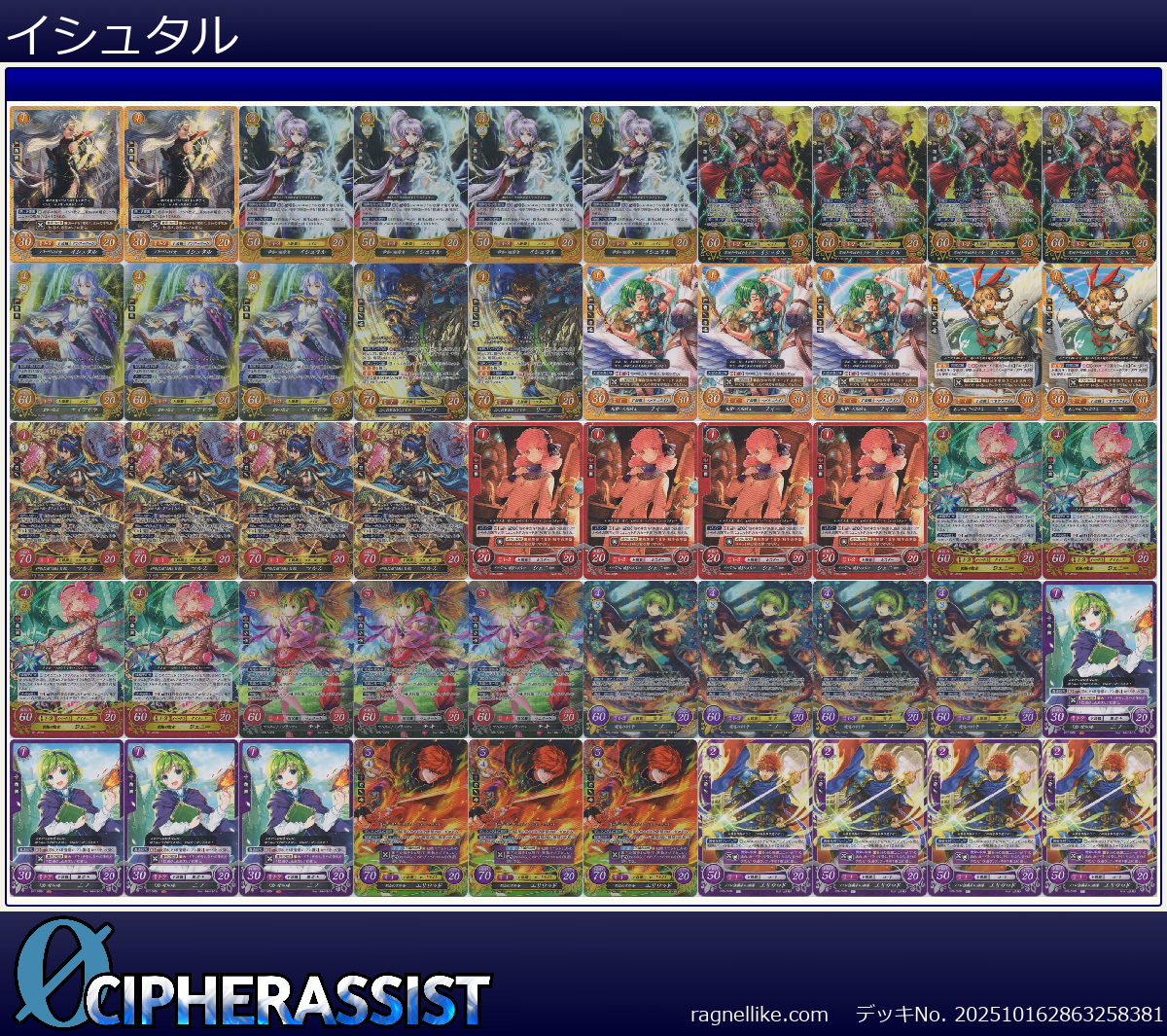 B12-098N フリージの王女 イシュタル | 2枚 | 聖戦旗 | 1 | なし | 30 | 20 | 1-2 | 女 | 魔法 |