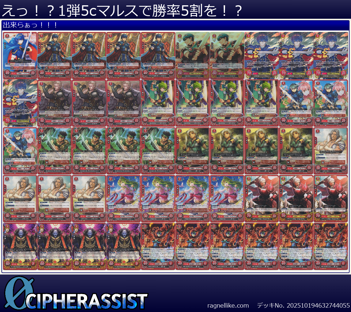 カード名 | 採用枚数 | 所属 | 出撃コスト | CCコスト | 戦闘力 | 支援力 | 射程 | 性別 | 武器 |