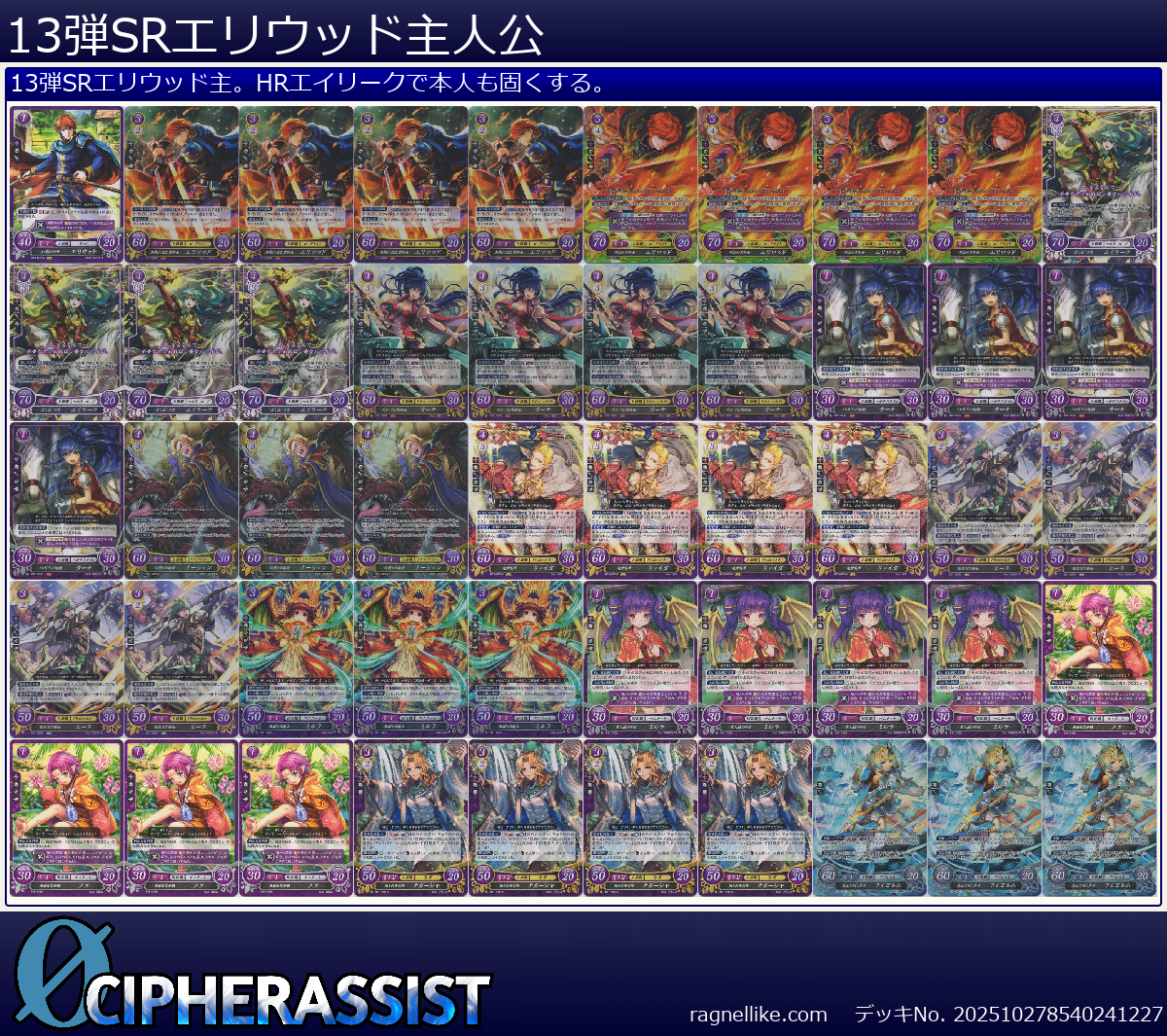 | B13-001SR 烈炎の勇騎士 エリウッド | 4枚 | 神器 | 5 | 4 | 70 | 20 | 1 | 男 | 剣 |