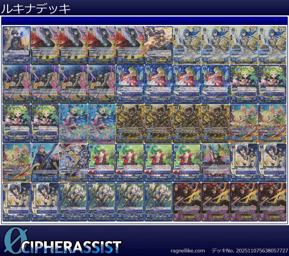 | B14-001SR 希望を統べる女王 ルキナ | 4枚 | 聖痕 | 5 | X | 70 | 20 | 1 | 女 | 剣 |