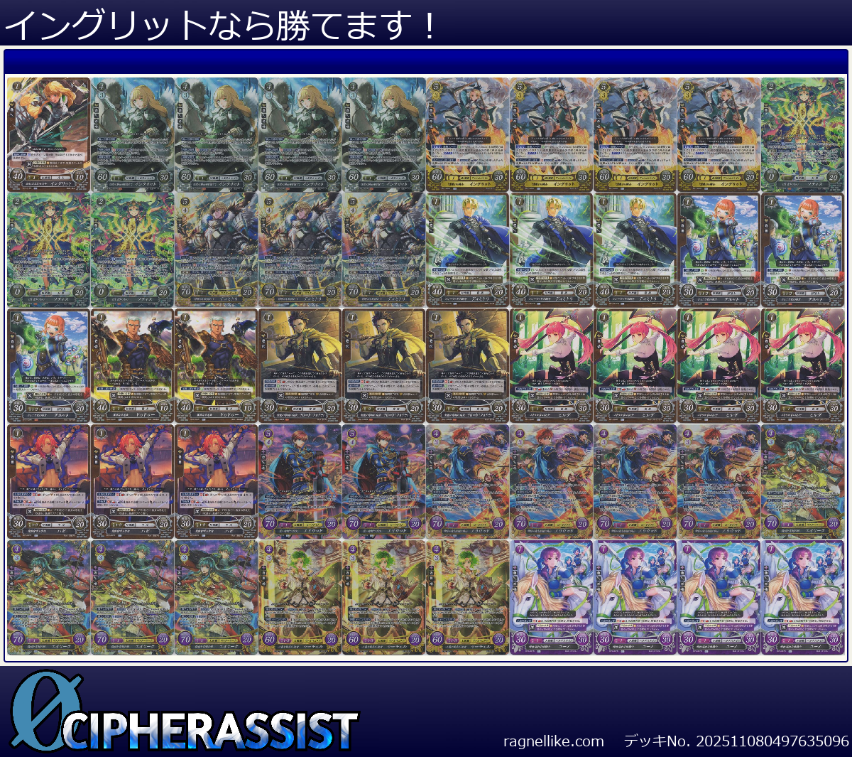 | B21-014R 「清廉」の騎士 イングリット | 4枚 | 女神紋 | 5 | 3 | 60 | 30 | 1 | 女 | 槍 |