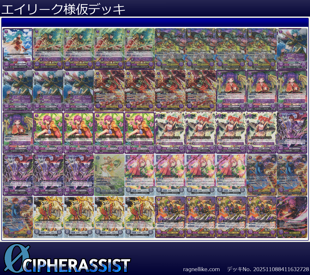 | B11-002R 聖なる雷剣の姫 エイリーク | 4枚 | 神器 | 3 | 2 | 60 | 20 | 1 | 女 | 剣 |