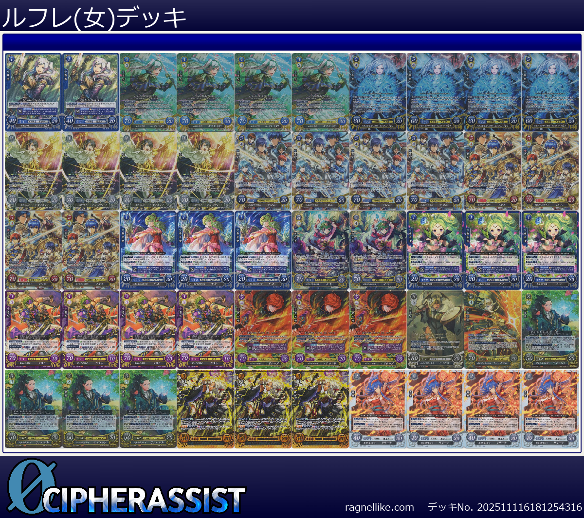 | B22-064SR 七色の策を持つ軍師 ルフレ(女) | 4枚 | 聖痕 | 5 | 4 | 60 | 20 | 1-2 | 女 | 魔法 |