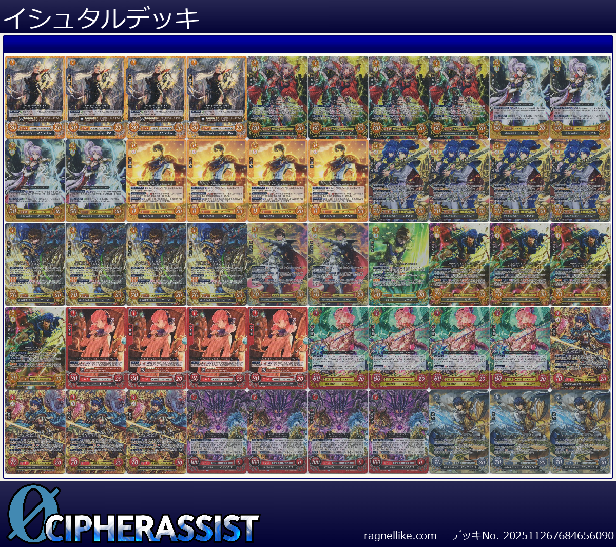 | B12-098N フリージの王女 イシュタル | 4枚 | 聖戦旗 | 1 | なし | 30 | 20 | 1-2 | 女 | 魔法 |