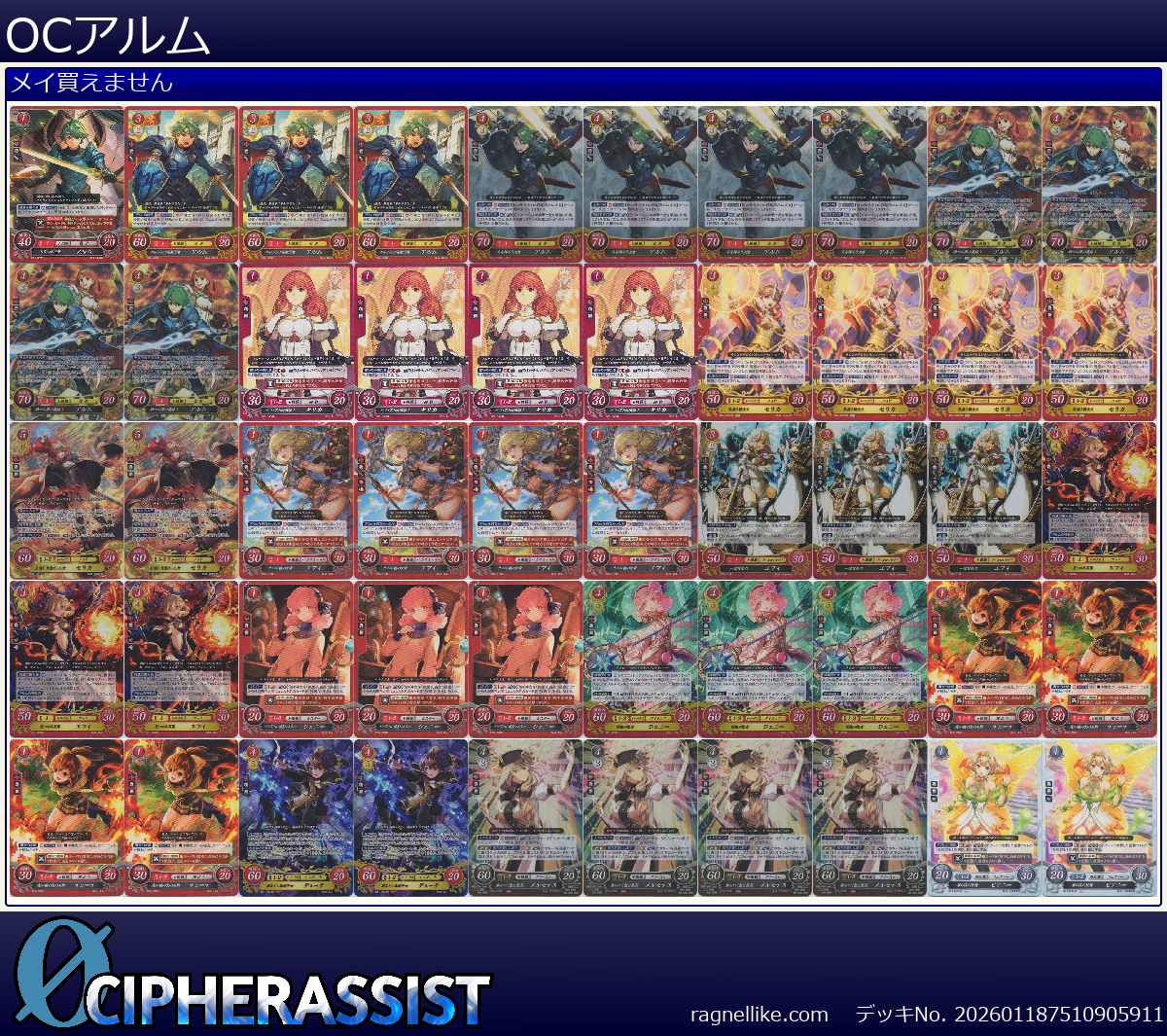 | カード名 | 採用枚数 | 所属 | 出撃コスト | CCコスト | 戦闘力 | 支援力 | 射程 | 性別 | 武器 |