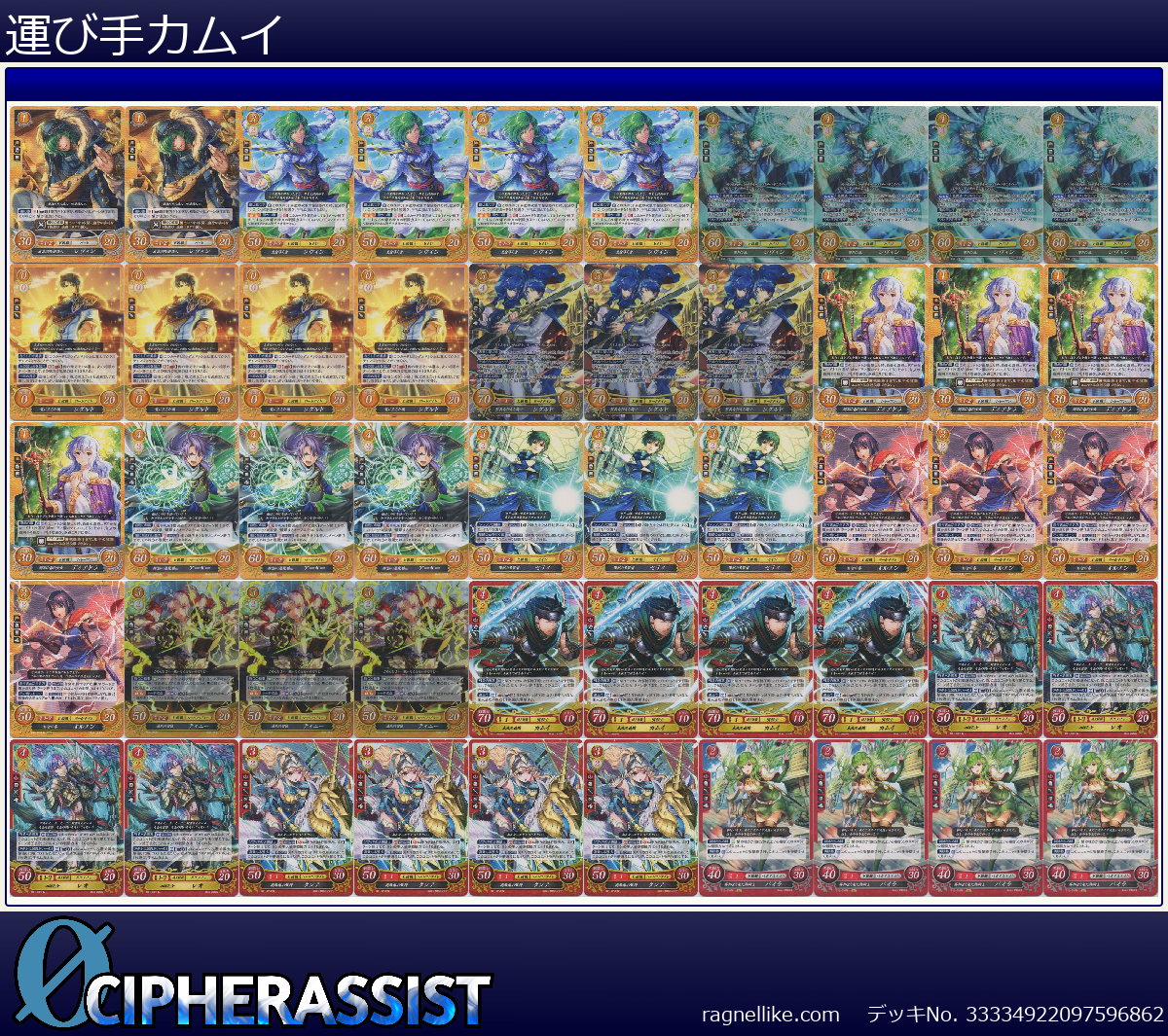 | B06-005N 精霊の森の少女 ディアドラ | 4枚 | 聖戦旗 | 1 | なし | 30 | 20 | 1-2 | 女 | 魔法 |