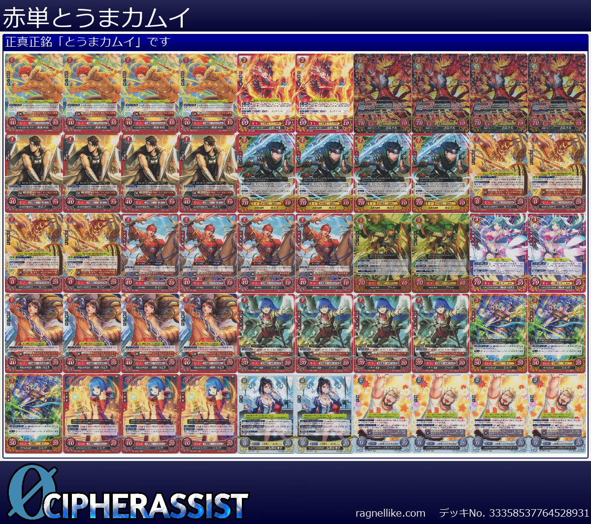 カード名 | 採用枚数 | 所属 | 出撃コスト | CCコスト | 戦闘力 | 支援力 | 射程 | 性別 | 武器 |